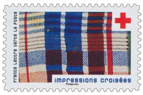 | Description | Provenant du carnet de 10 timbres-poste illustrés par des étoffes en impressions croisées pour la Croix-Rouge française. |
