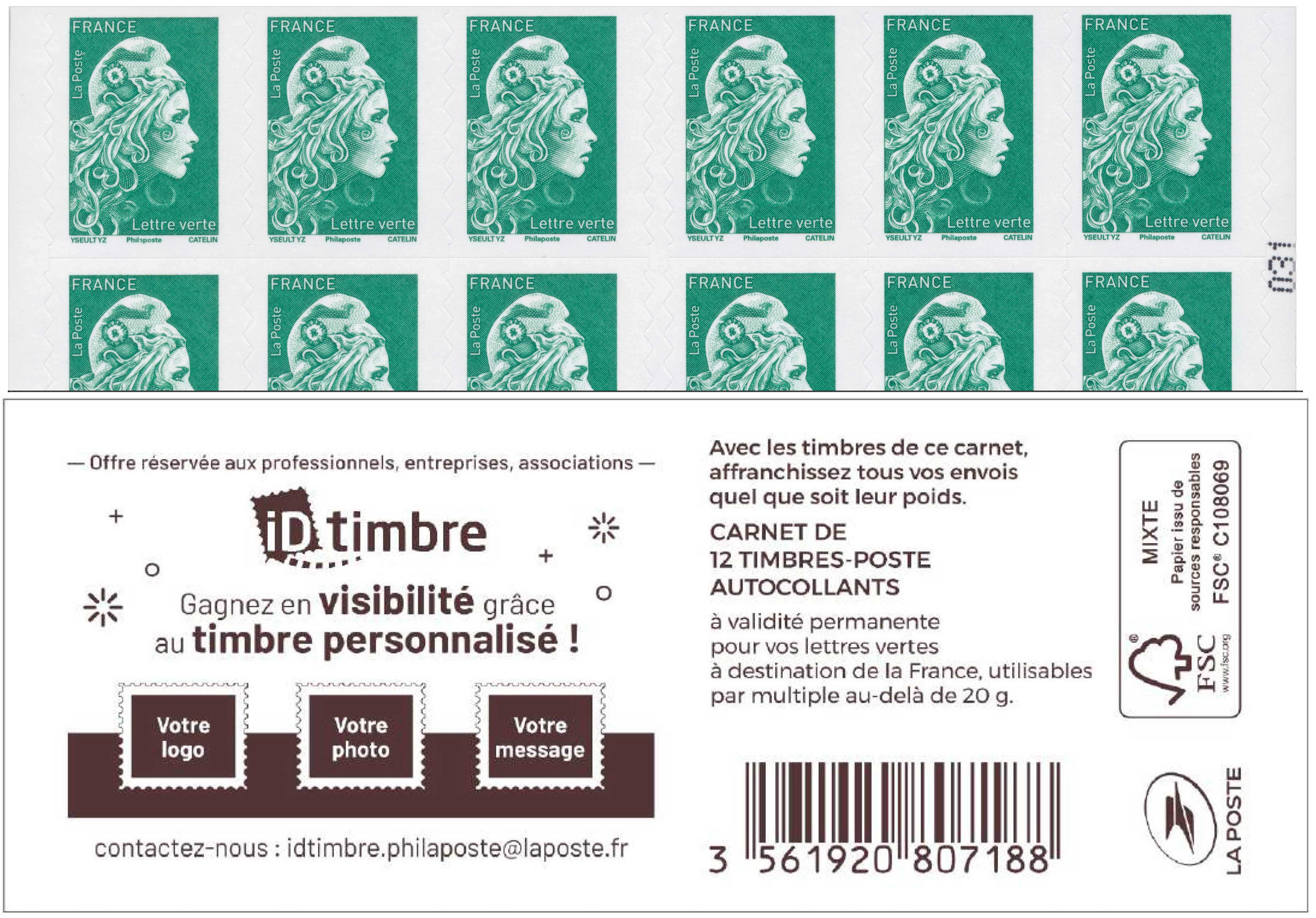 | Description | CARNET MARIANNE de 12 timbres lettre verte |