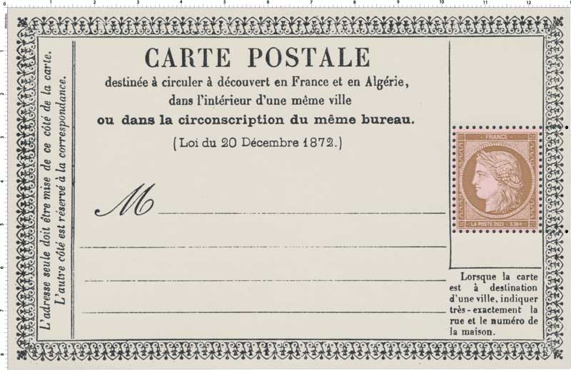 | Description | Émission d'un timbre sur les 150 ans de la carte postale en France. |