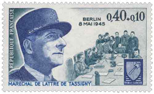 | Description | 25e Anniversaire de l'Armistice du 8 mai 1945. Maréchal de Lattre de Tassigny (1889-1952), né à Mouilleron-en-Pareds (Vendée) |