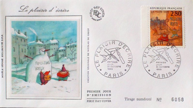 | Description | Le plaisir d'écrire vu par 12 auteurs de bandes dessinées. Meilleurs vœux de Nicolas de Crécy, dessinateur, scénariste de bande dessinée, et illustrateur, né à Lyon en 1966 |