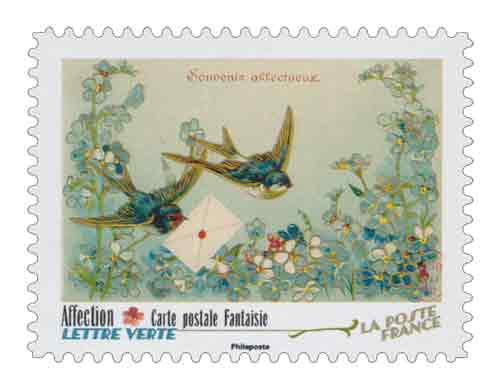 | Description | Provenant du carnet de collection de 12 timbres-poste autocollants, illustré par 12 cartes postales anciennes, dites « fantaisie » pour fêter les 150 ans de la carte postale en France. |