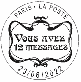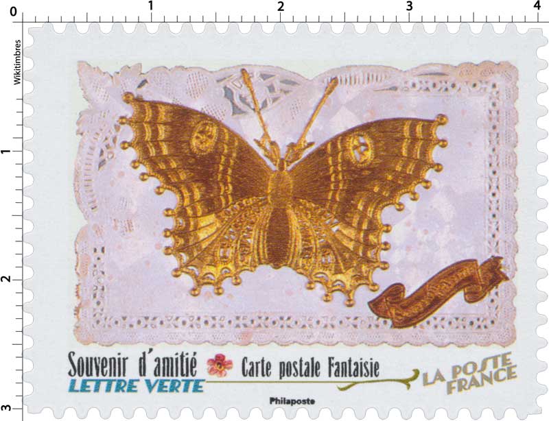 | Description | Provenant du carnet de collection de 12 timbres-poste autocollants, illustré par 12 cartes postales anciennes, dites « fantaisie » pour fêter les 150 ans de la carte postale en France. |