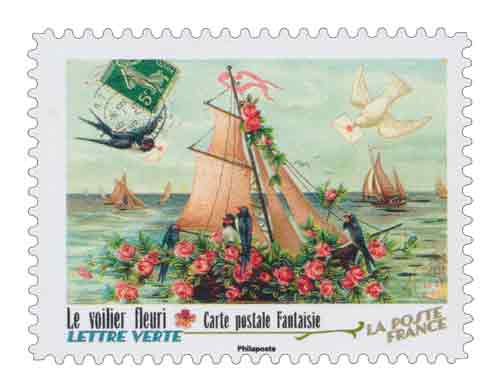 | Description | Provenant du carnet de collection de 12 timbres-poste autocollants, illustré par 12 cartes postales anciennes, dites « fantaisie » pour fêter les 150 ans de la carte postale en France. |