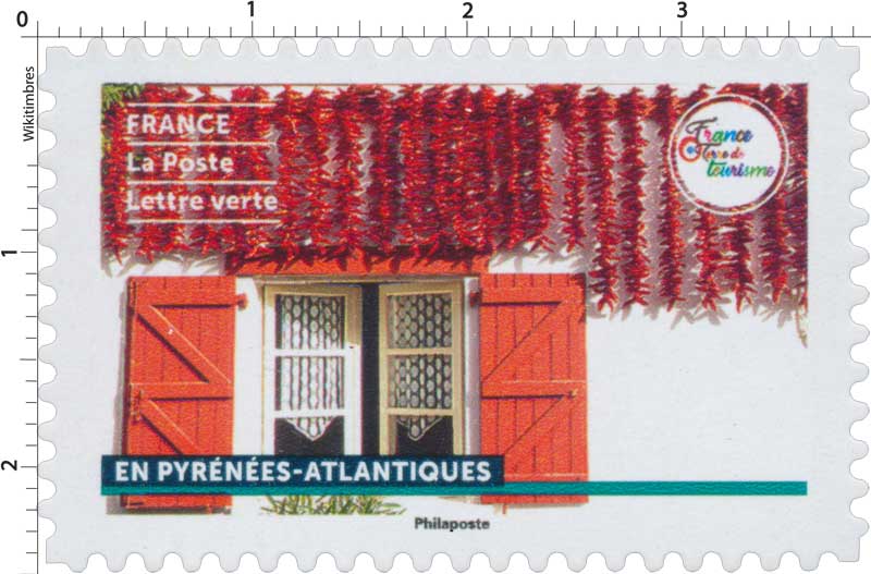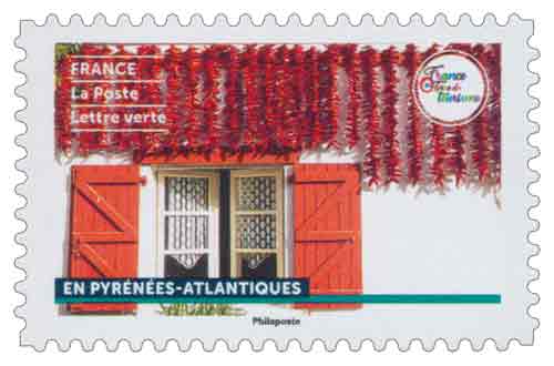 | Commentaire | PYRÉNÉES-ATLANTIQUE (64), en Nouvelle-Aquitaine : l'habitat basque a des menuiseries rouges, vertes ou bleues. Le rouge viendrait du sang de bœuf qui protégerait le bois, le vert viendrait du fer présent dans le sol. Plus près de la côte, le bleu viendrai du reste de peinture des bateaux de pêche. Les piments suspendus ornent les façades blanches et rouges des villages traditionnels de l’arrière-pays labourdin (l'un des territoires basques traditionnels). |