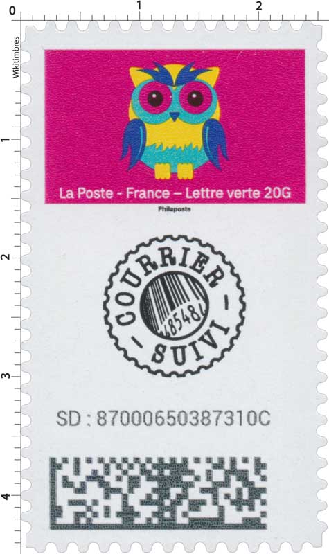 | Description | Provenant du carnet de 9 timbres adhésifs incluant l’option Suivi. |