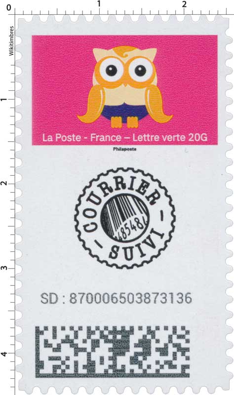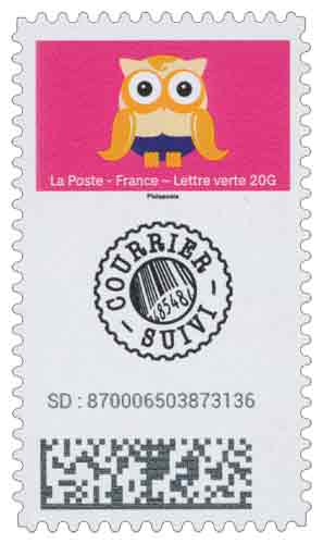 | Description | Provenant du carnet de 9 timbres adhésifs incluant l’option Suivi. |