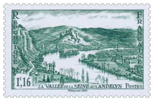 | Commentaire | Visuel : une boucle de la Seine, vue des falaises du Mont Pivin (vers Le Thuit). : avec l'île du Château, sur la Seine et le Petit-Andelys, au pied des vestiges de la forteresse de Richard Coeur-de-Lion, roi d'Angleterre, situé sur la Roche-Gaillard. |