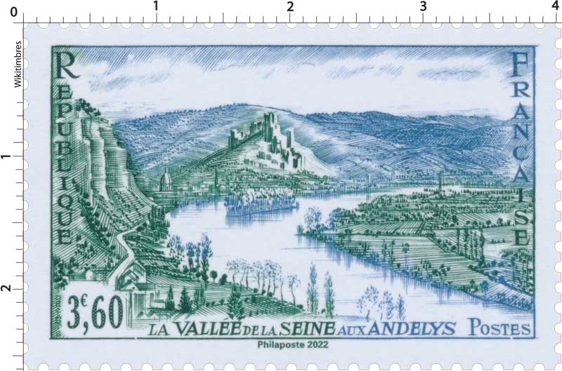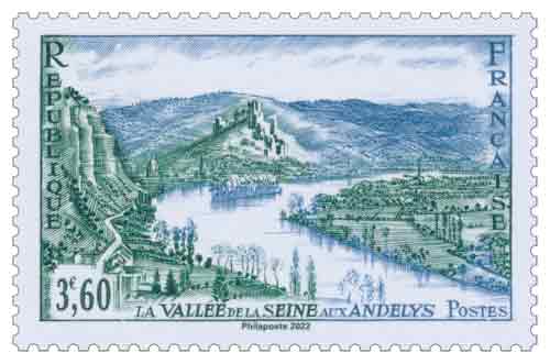 | Commentaire | Visuel : une boucle de la Seine, vue des falaises du Mont Pivin (vers Le Thuit). : avec l'île du Château, sur la Seine et le Petit-Andelys, au pied des vestiges de la forteresse de Richard Coeur-de-Lion, roi d'Angleterre, situé sur la Roche-Gaillard. |