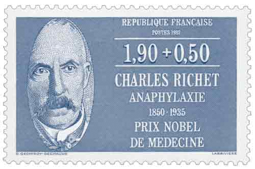 | Commentaire | Les timbres imprimés en feuille ont une gomme mate. Ceux imprimés en carnets ont une gomme brillante. À la fin des années 1980, la politique commémorative des timbres de France accorde une place importante aux figures scientifiques dont les travaux ont marqué durablement la médecine moderne, et ce timbre s’inscrit dans cette démarche en rendant hommage à Charles Richet, physiologiste né à Paris en 1850. Toute sa carrière scientifique se déroule dans le cadre universitaire parisien, où il choisit très tôt de croiser biologie, chimie et médecine afin de comprendre les mécanismes fondamentaux du fonctionnement normal et pathologique de l’organisme. Cette approche, encore peu répandue à la fin du XIXe siècle, vise à fonder les traitements médicaux sur des bases expérimentales rigoureuses. Ses recherches portent d’abord sur la digestion, la contraction musculaire et les effets des substances toxiques sur le système nerveux, avant de s’orienter vers les phénomènes liés à l’immunité. En 1902, ses travaux menés avec Paul Portier aboutissent à la mise en évidence de l’anaphylaxie, réaction parfois brutale et potentiellement mortelle de l’organisme à une substance pourtant déjà tolérée. Cette découverte remet en cause les conceptions dominantes de l’époque, centrées sur l’agression microbienne, et ouvre un champ nouveau dans l’histoire de l’immunologie. Elle vaut à Charles Richet l’attribution du prix Nobel de physiologie ou médecine en 1913. Ce timbre, émis en 1987, rappelle l’importance accordée par l’administration postale à la valorisation des grandes avancées scientifiques françaises et souligne le rôle de la recherche fondamentale dans l’évolution des pratiques médicales, en particulier dans le domaine de la compréhension des réactions immunitaires. Article rédigé pour WikiTimbres |