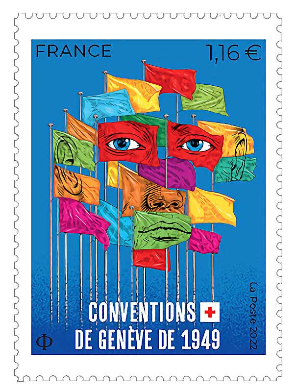 | Commentaire | La Poste reverse deux euros de don à la Croix-Rouge française, pour chaque bloc vendu. Le droit international humanitaire (DIH) est un ensemble de règles qui, pour des raisons humanitaires, cherchent à limiter les effets des conflits armés. Il protège les personnes qui ne participent pas, ou ne participent plus, directement ou activement aux hostilités, et restreint le choix des moyens et méthodes de guerre. Le DIH est également appelé "droit de la guerre" ou "droit des conflits armés". C'est une partie du droit international public, lequel est essentiellement constitué de traités, du droit international coutumier et des principes généraux de droit (voir l'art. 38 du Statut de la Cour internationale de Justice). Il convient de faire une distinction entre le DIH, qui réglemente la conduite des parties à un conflit armé (jus in bello), et les principes du droit international public énoncés dans la Charte des Nations Unies qui déterminent si un État peut légitimement recourir à la force armée contre un autre État (jus ad bellum). La Charte prohibe un tel emploi de la force, à deux exceptions près : en cas de légitime défense contre une attaque armée, et lorsque l'emploi de la force armée est autorisé par le Conseil de sécurité des Nations Unies. Le DIH ne stipule pas si le début d'un conflit armé était légitime ou non, mais cherche plutôt à réglementer le comportement des parties une fois qu'il a commencé. |