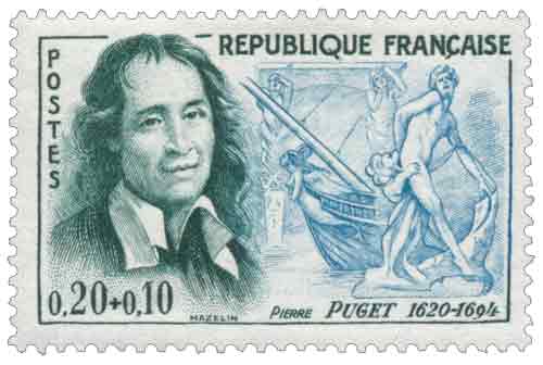 | Commentaire | Surtaxe pour la Croix-Rouge française. Émis en 1961 avec surtaxe au profit de la Croix-Rouge française, le timbre consacré à Pierre Puget rend hommage à une figure majeure du baroque français, longtemps tenue à l’écart du classicisme officiel. Né et mort à Marseille, Puget mena une carrière itinérante entre Marseille, Toulon, Gênes et Rome, où il fut l’élève de Pierre de Cortone avant de choisir la sculpture plutôt que la peinture. Le visuel gravé par Charles Mazelin évoque son univers : en arrière-plan figurent les Atlantes de l’hôtel de ville de Toulon, la proue sculptée d’un vaisseau et le célèbre Milon de Crotone, synthèse de son art puissant et expressif. Cette iconographie rappelle l’originalité d’un créateur attaché à une veine baroque pathétique, sensible dans ses grandes compositions monumentales comme Persée délivrant Andromède ou dans ses bas-reliefs tardifs, Alexandre et Diogène et Saint Charles Borromée priant pour la cessation de la peste de Milan. Le timbre s’inscrit dans la tradition des émissions commémoratives culturelles françaises, associant reconnaissance patrimoniale et solidarité par la surtaxe caritative, et il fut destiné à l’affranchissement courant des cartes postales et imprimés, assurant une large diffusion postale de l’image de Puget auprès du public. Article rédigé pour WikiTimbres. |
