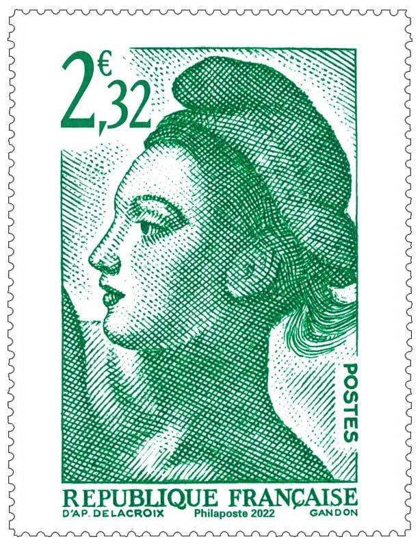 | Description | Provenant du carnet de 14 timbres « 40 ans de la Liberté de Gandon », d’après Delacroix est constitué d'une couverture et de 2 feuillets (1 feuillet de 2 timbres et 1 feuillet de 12 timbres). |