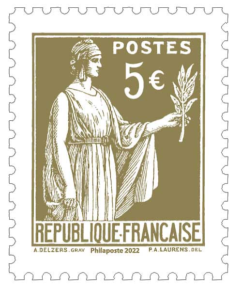 | Commentaire | 3 timbres de valeurs d’affranchissement de 3 € et 3 timbres de 5 € Bloc spécial, à tirage limité, mettant à l’honneur le 90ème anniversaire de l'émission du timbre type "Paix" (1èresérie). Il est imprimé selon le procédé de typographie rotative utilisé en 1932, se compose de 6 timbres de couleurs "olive" et "bleu". Historique : André Tardieu (1876-1945, homme d'Etat) président du Conseil des ministres, demande en 1932 à l'administration postale de réaliser une nouvelle série de timbres d'usage courant consacrés à la "Paix". La création artistique est confiée à Paul-Albert LAURENS (18 janv.1870 - 27 sept.1934, peintre, graveur, illustrateur et enseignant à polytechnique de 1919 à 1934) qui réalise une "Allégorie de la République, coiffée du bonnet phrygien, tenant à gauche un rameau d'olivier et à droite, maintenant son épée au fourreau". La gravure est confiée à Jean Antonin DELZERS (17 août 1873-8 nov.1943, dessinateur et graveur). |