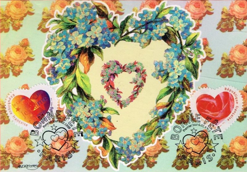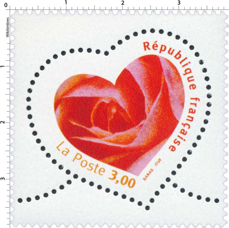 | Description | Timbres de souhaits. Timbres de Saint-Valentin Cœur avec détail d'une rose |