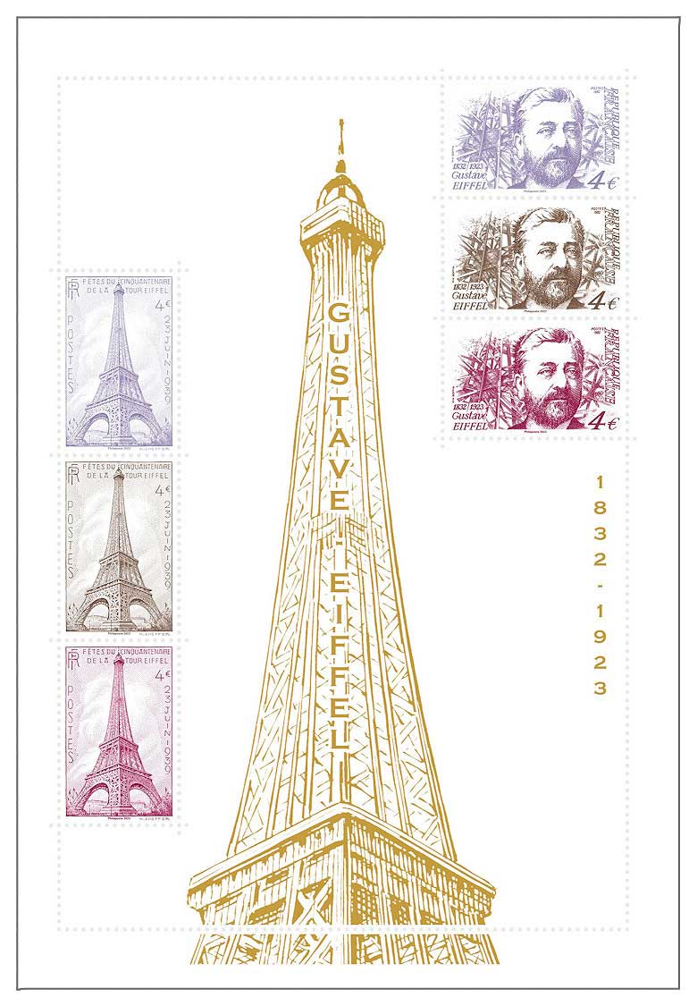 | Description | Émission d'un bloc de 6 timbres à l’occasion du centenaire de la disparition de Gustave Eiffel. |