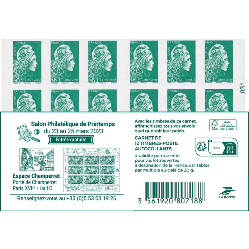 | Description | Carnet Marianne Salon Philatélique de Printemps |