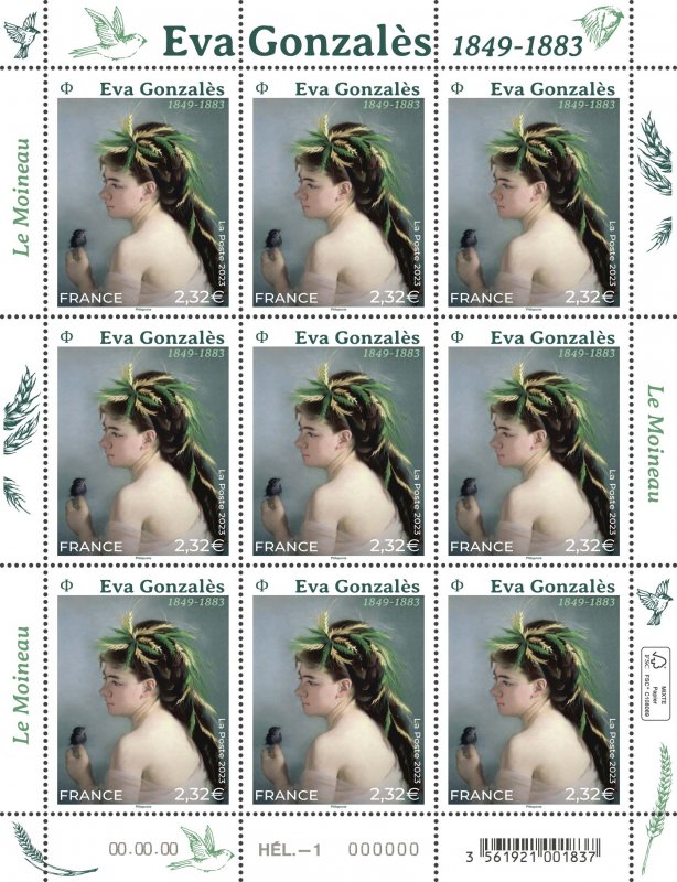 | Description | Émission d'un timbre de la série artistique représentant "Le Moineau" une oeuvre d’Eva GONZALÈS peintre impressionniste française. |