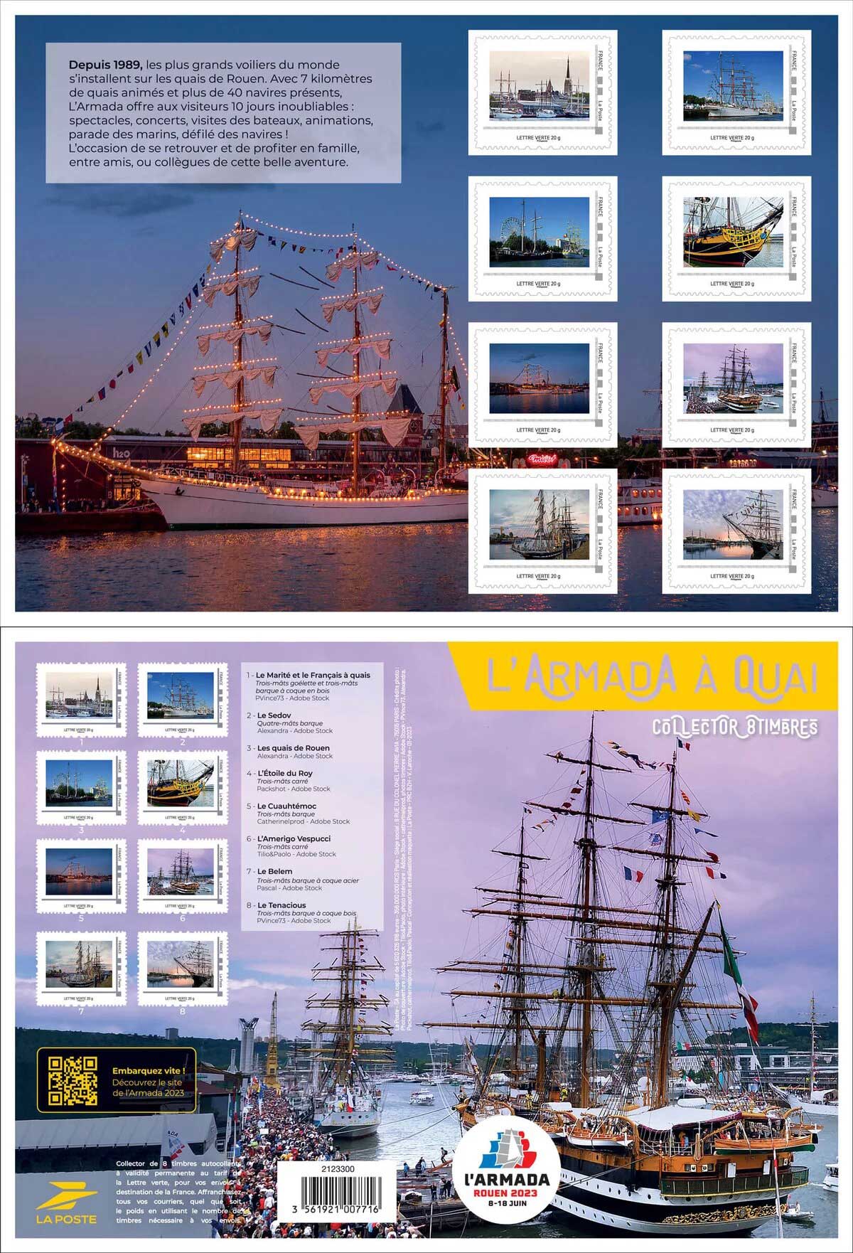 | Description | Émission d'un collector de 8 TP lettre verte sur l'Armada en mer, les plus grands voiliers du monde dans le port de Rouen |