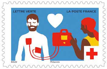 | Description | Provenant du carnet de 10 timbres-poste s’intitulant «prévenir et éduquer» illustré par l’apprentissage des gestes de premiers secours et l’intervention des secouristes bénévoles de la Croix-Rouge française lors des dispositifs prévisionnels de secours. |