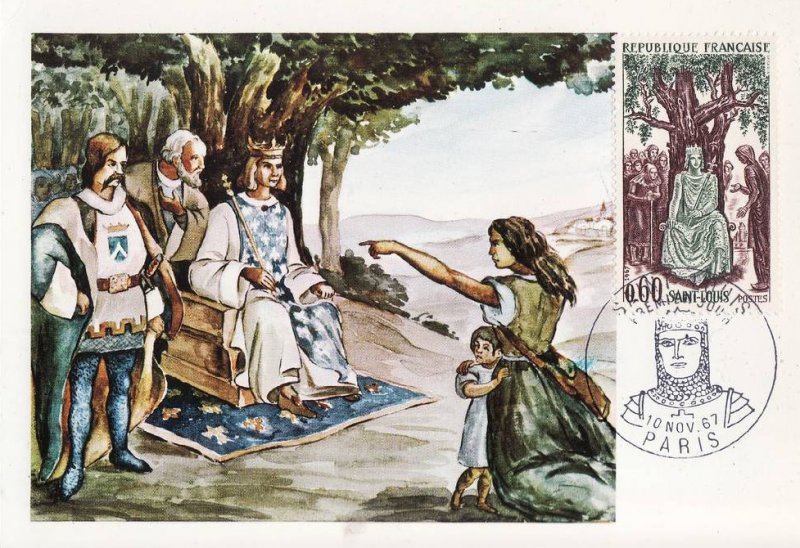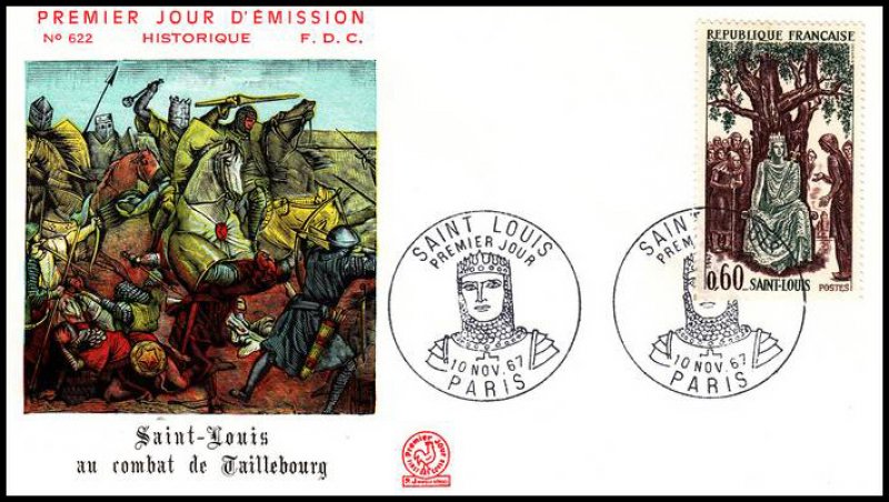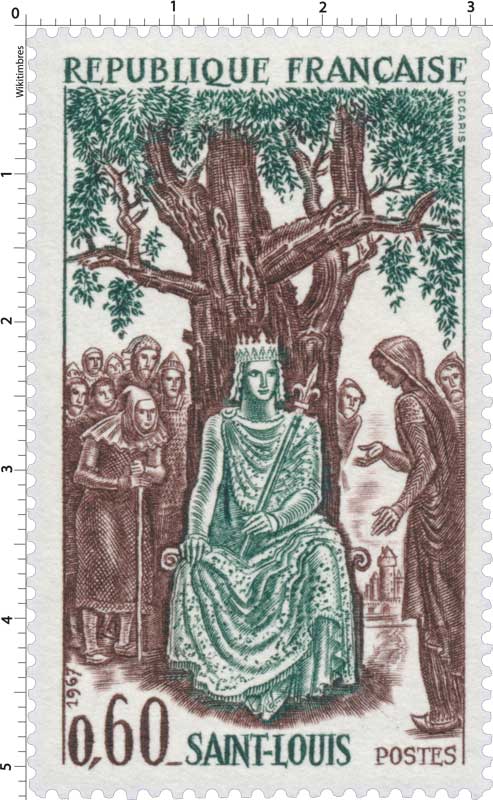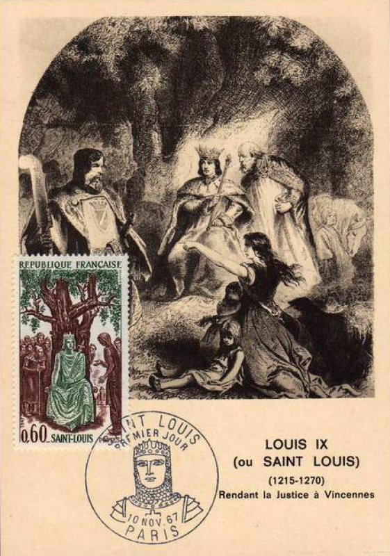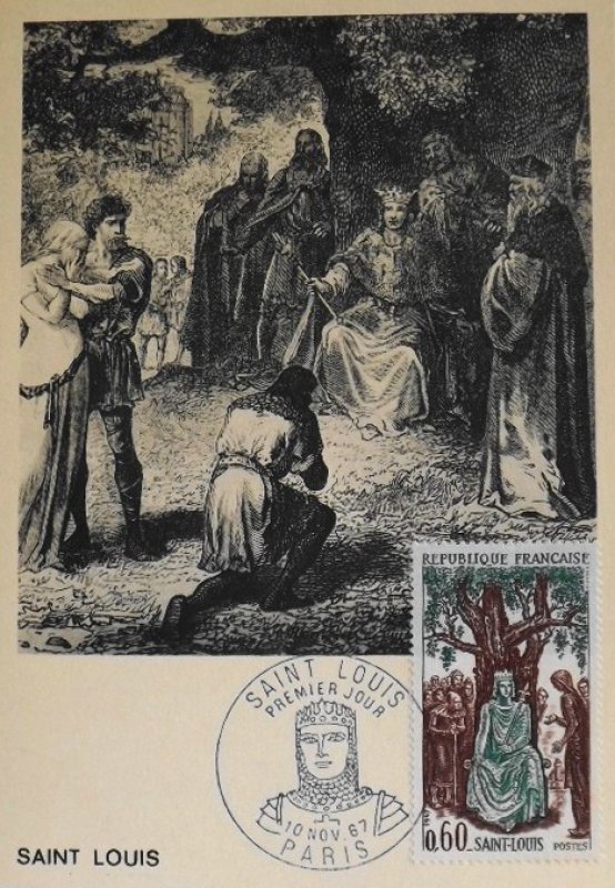 | Commentaire | Alors que l'émission de 1954 (N°Y&T: 989) ne comportait pas de faute d'orthographe, le légende de celle de 1967 est écrite avec un trait d'union alors que le nom d'un saint n'en prend pas. Tu sais qui a lancé la fameuse expression "rendre justice sous un chêne" ? Louis IX, alias Saint Louis. Et franchement, le mec n’était pas qu’un roi pieux planté dans les bois... C’était un stratège redoutable, un réformateur tenace et un voyageur un brin têtu – tu vas voir. Il monte sur le trône à 12 ans (merci maman !), après la mort de son père Louis VIII. Sa mère, Blanche de Castille, assure la régence et ne plaisante pas avec l’éducation : foi rigoureuse, sens du devoir, pas de Playstation. Une fois majeur, Louis prend les choses en main mais garde ce style humble, presque monacal. Il vit sobrement, dort peu, bosse beaucoup. Pas de clinquant, mais de l’efficacité. Contre les barons, il frappe vite (Taillebourg, Saintes...), et à l’étranger, on commence à le voir comme un juge, un médiateur, presque un “santo rey” avant l’heure. Mais voilà, il avait aussi une obsession : Jérusalem. En 1248, il part pour la VIIe Croisade... qui vire à la cata. Capturé à Mansourah, rançonné comme un footballeur de ligue 1, il reste malgré tout pour aider les siens. Et contre toute attente, les musulmans le surnomment le Sultan Juste. Pas mal, non ? Il rentre, reconstruit la France, réforme la justice, crée le Parlement, interdit les duels judiciaires et impose la monnaie royale. Ah, et il fonde la Sainte-Chapelle, la Sorbonne, l’hôpital des Quinze-Vingts... bonhomme. Et puis en 1270, bim, il repart en croisade. Contre l’avis de tous. Arrivé à Tunis, la peste le fauche. Il meurt le 25 août, date devenue la Saint-Louis. Canonisé en 1297, il reste le seul roi de France à être officiellement devenu saint. Un détail que même ses ennemis lui reconnaissaient, paraît-il. Un roi mystique, certes, mais pas mystifié. WikiTimbres |