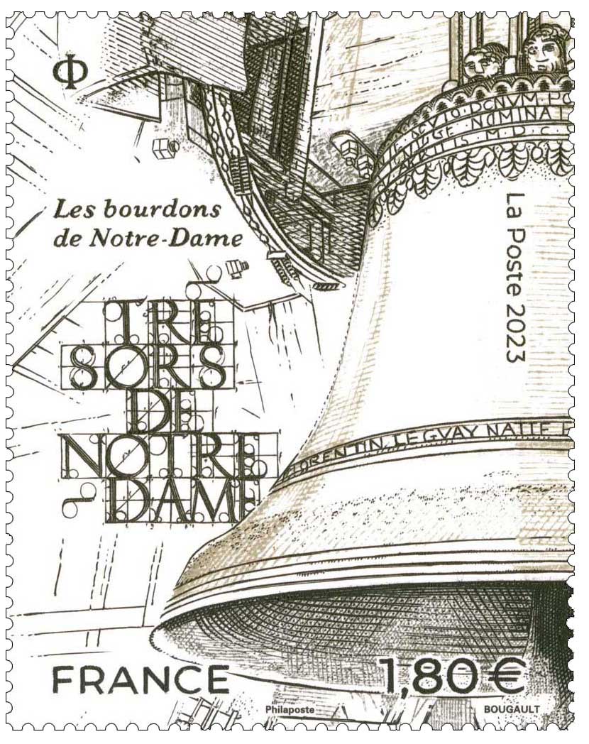 | Commentaire | En savoir plus sur Wikipédia : Cathédrale Notre-Dame de Paris Bourdons de la tour Sud : "Emmanuel", la plus grosse des cloches, mise en service en 1681, puis refondu en 1685, par Florentin II Le Guay, sous le règne de Louis XIV, a été conçue pour remplacer "Jacqueline", une cloche portant le prénom de l'épouse du donateur, le comte Jean de Montaigu, frère du 95ème évêque de Paris, en 1400. Ce gros bourdon, baptisé Emmanuel (en l'honneur de Jésus-Christ), mais portant également le prénom de Marie-Thérèse, en l’honneur du parrainage de Louis XIV (1638-1715) et son épouse Marie-Thérèse d’Autriche (1638-1683). le deuxième bourdon se nomme "Marie", en hommage à la Vierge Marie, il perpétue le souvenir de la première cloche "Marie", fondu et refondu entre 1378 et 1792 (elle fut fondue à la Révolution). Le bourdon "Marie" est fondu le 14 sept.2012 par la fonderie hollandaise Royal Eijsbouts. |