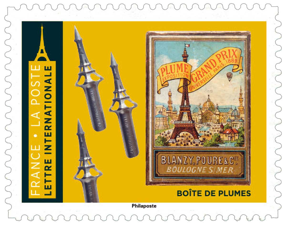 | Description | Provenant du carnet de 8 timbres-poste, au tarif international, illustré par des objets de collection sur le thème de la Tour Eiffel. |