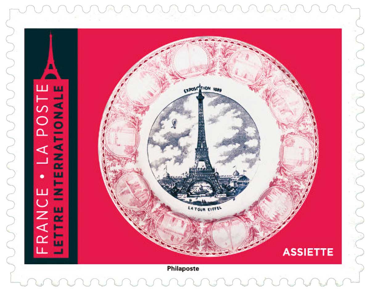 | Description | Provenant du carnet de 8 timbres-poste, au tarif international, illustré par des objets de collection sur le thème de la Tour Eiffel. |