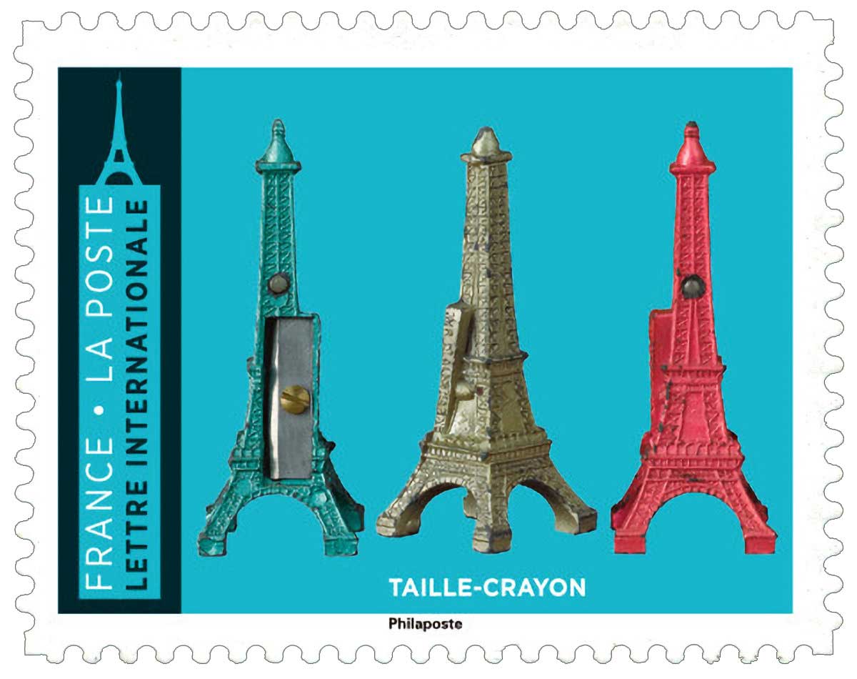 | Description | Provenant du carnet de 8 timbres-poste, au tarif international, illustré par des objets de collection sur le thème de la Tour Eiffel. |