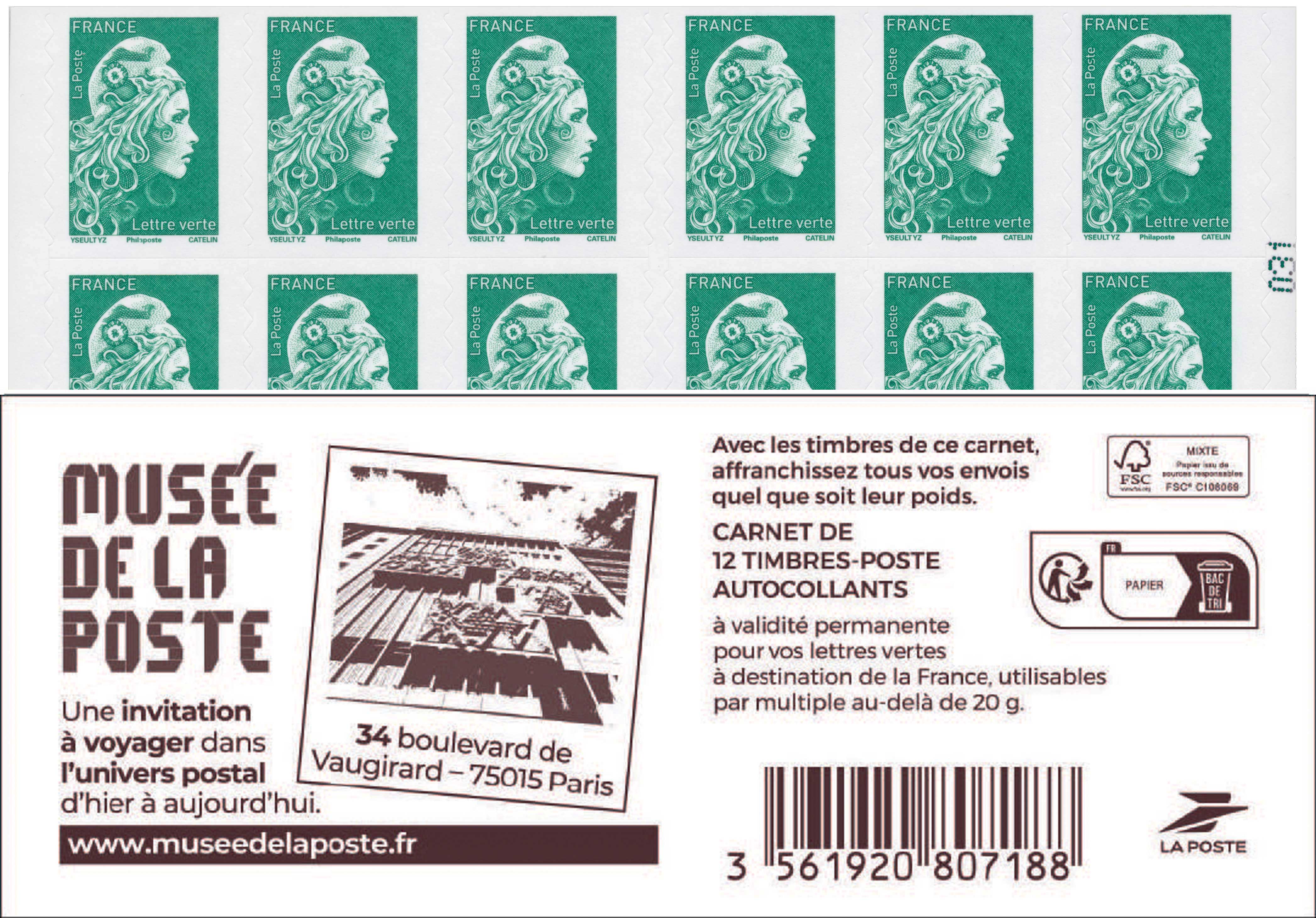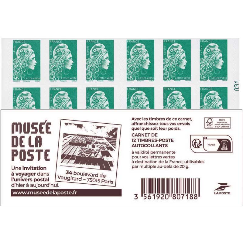| Description | Carnet Marianne lettre verte "MUSÉE DE LA POSTE" |