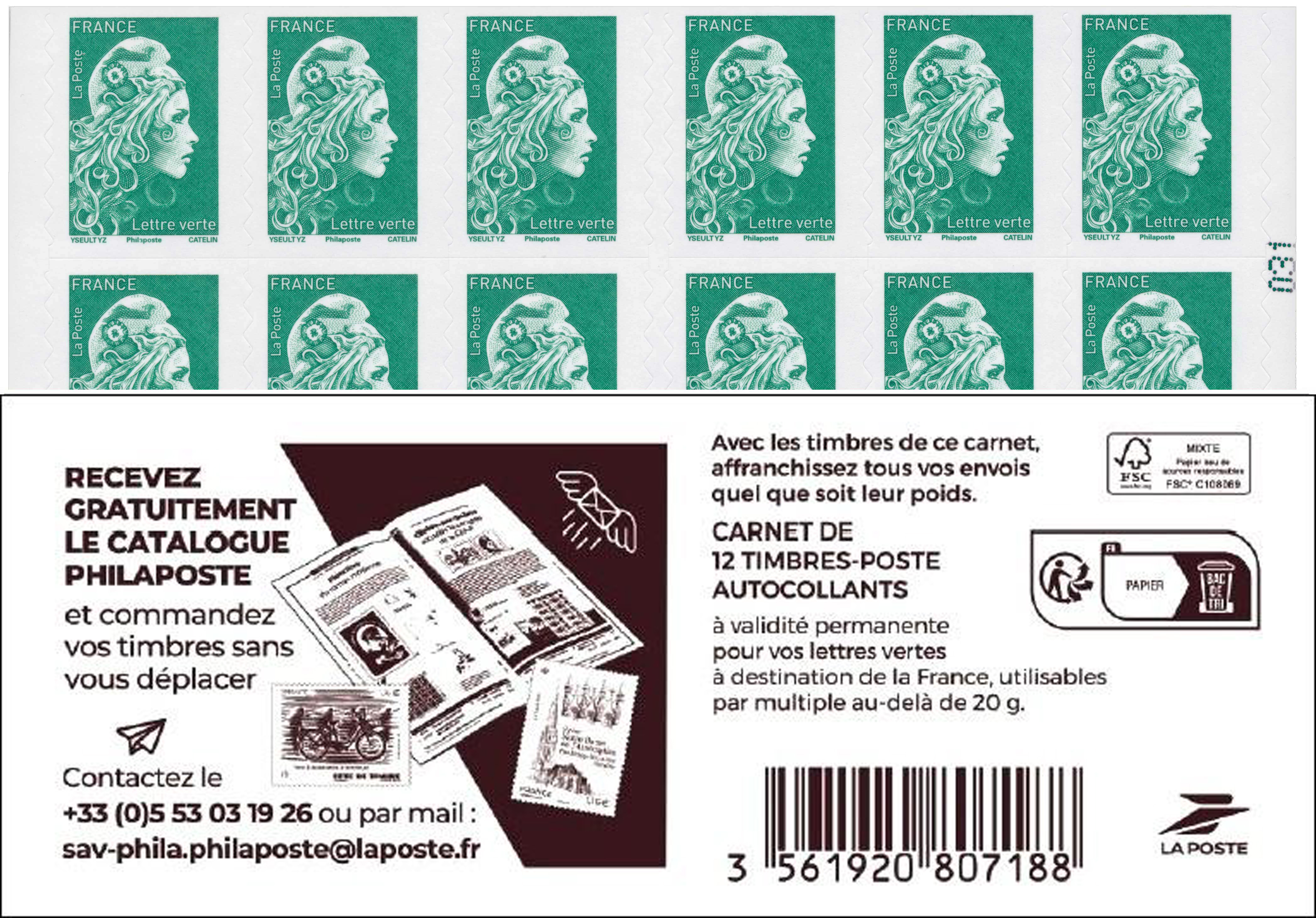 | Description | Carnet Marianne lettre verte "CATALOGUE" |