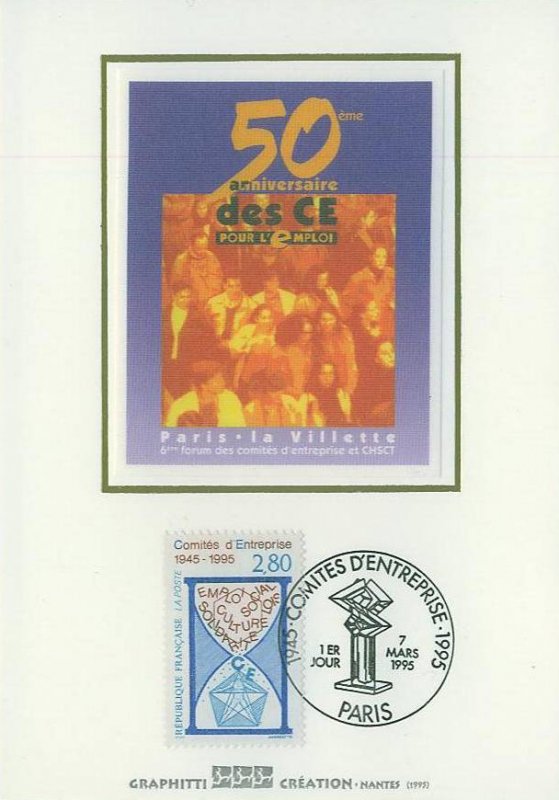 | Description | 50e anniversaire de la création des Comités d'Entreprise (1945-1995). Emploi, Social, Culture, Lois, Solidarité |
