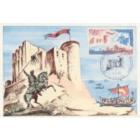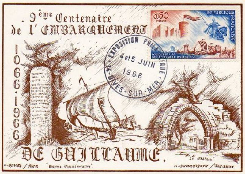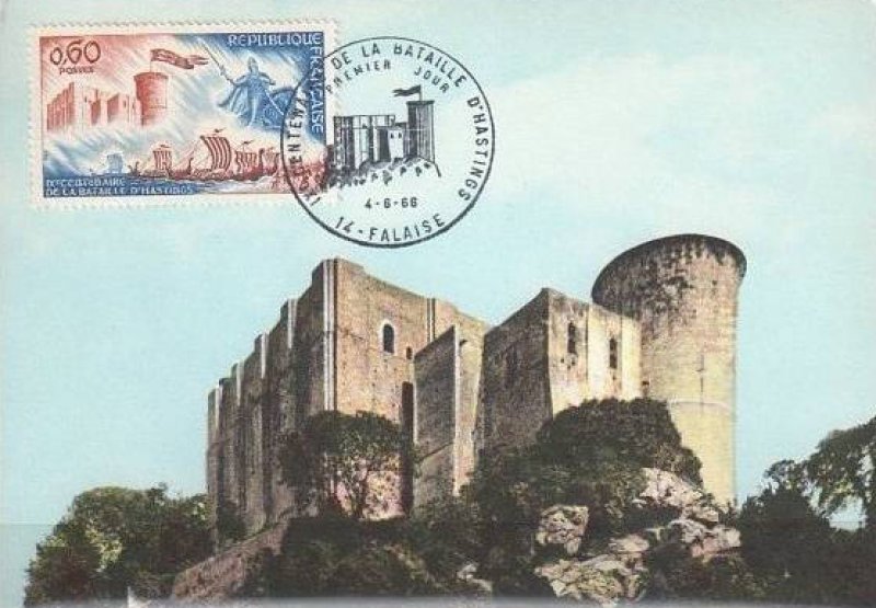 | Description | 9e centenaire de la bataille d'Hastings. Le château de Falaise et la statue de Guillaume le Conquérant, duc de Normandie |