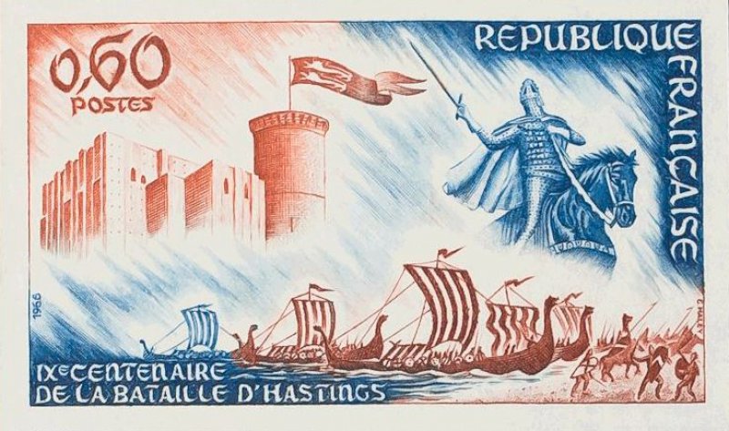 | Commentaire | Imagine une flotte de 2 000 navires quittant la côte picarde au coucher du soleil, en 1066, avec un seul objectif : conquérir l’Angleterre. Ce n’est pas un film, c’est l’histoire vraie de Guillaume le Bâtard – oui, c’est comme ça qu’on l’appelait – parti récupérer une couronne qu’on lui avait, disons… subtilisée. Guillaume, duc de Normandie, pensait avoir été désigné héritier par le roi Édouard-le-Confesseur. Sauf que Harold, beau-frère du roi, lui grille la politesse dès qu’Édouard meurt. Alors Guillaume, vexé mais pas bête, obtient une bénédiction du Pape (ça aide), embauche des mercenaires un peu partout (même des Flamands et des Bretons) et traverse la Manche avec une armée de 40 000 hommes. Et là, coup de bol ou génie stratégique, Harold est occupé à repousser une attaque viking dans le nord quand les Normands débarquent sans résistance. Le 14 octobre 1066, c’est le clash à Hastings. Les Saxons sont en haut de la colline, en mode mur humain. Les Normands en bas, à cheval. Ça tape fort, et ça dure toute la journée. Puis Guillaume tente un coup de poker : feindre une retraite. Les Saxons mordent à l’hameçon, quittent leur position… et bim, cernés, écrasés. Harold y laisse la vie, et Guillaume s’ouvre les portes de Londres. Il sera sacré à Noël. Classe. Ce qu’on oublie souvent, c’est que cette bataille change tout : pendant 300 ans, le français devient la langue du pouvoir en Angleterre. Les lois, la culture, même la noblesse anglaise... deviennent normandes. Pas mal pour un "bâtard", non ? Aujourd’hui encore, la Tapisserie de Bayeux raconte ça comme une BD géante de 70 mètres. Franchement, ça vaut un détour. WikiTimbres |