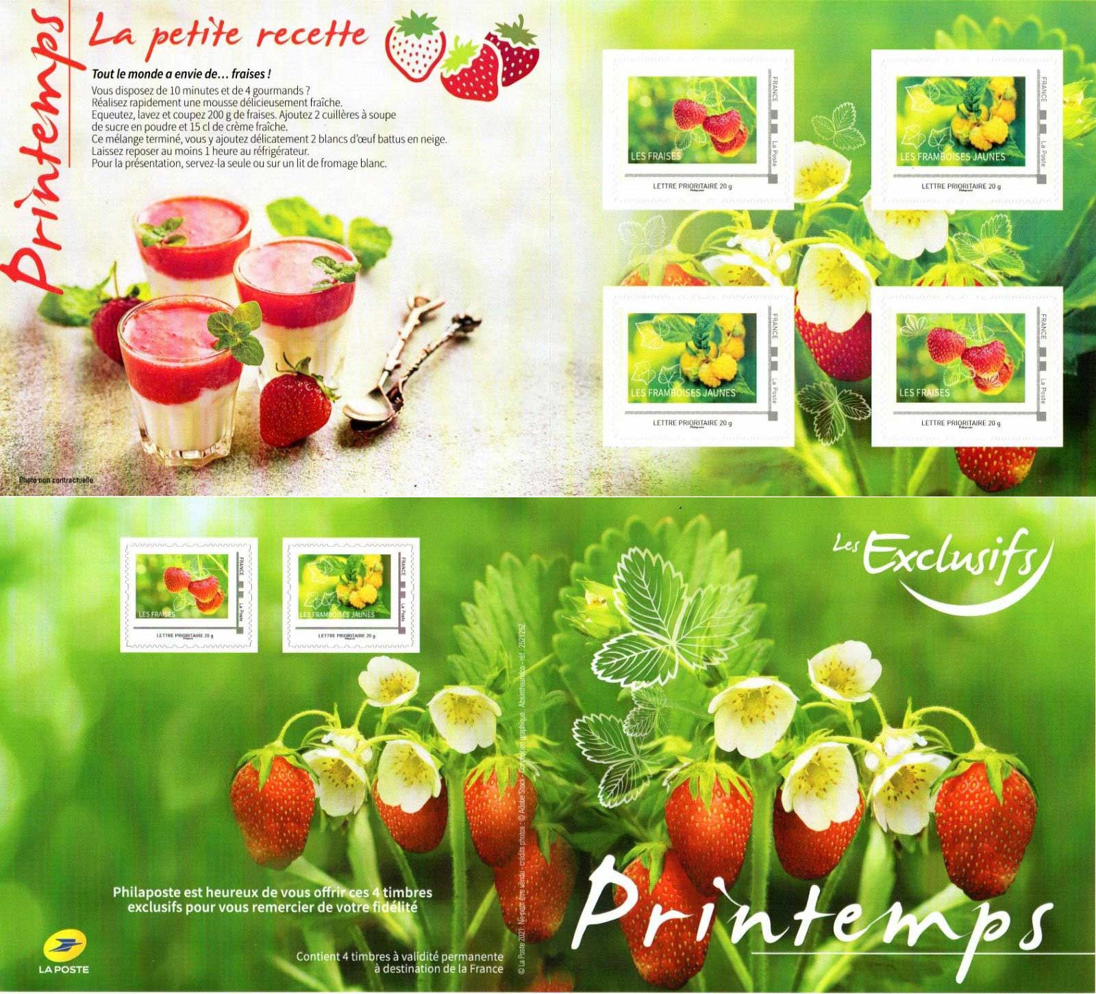 | Commentaire | Référence 2521252 Collector offert pour un achat sur le catalogue philaposte Mentions sur la couverture : -"Philaposte est heureux de vous offrir ces 4 timbres exclusifs pour vous remercier de votre fidélité" -"Ne peut être vendu".