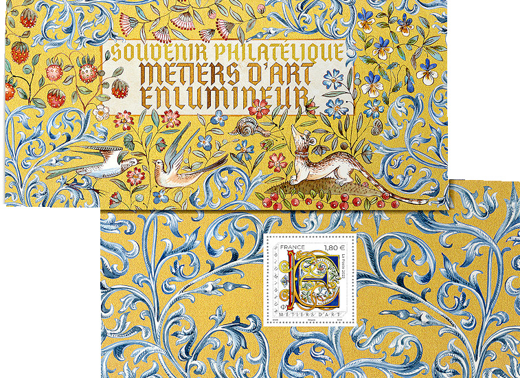 | Description | Émission d'un souvenir philatélique du nouveau timbre dans la série Métiers d’Art initiée en 2016. Après le sculpteur sur pierre, le joaillier, le ferronnier, l’ébéniste, le maroquinier, le tailleur de cristal, le relieur, le facteur d’orgues, le graveur sur métal, le céramiste le vitrailliste, le plumassier, le luthier, le dinandier, l’éventailliste c’est le savoir-faire de l’enlumineur qui est à l’honneur. |