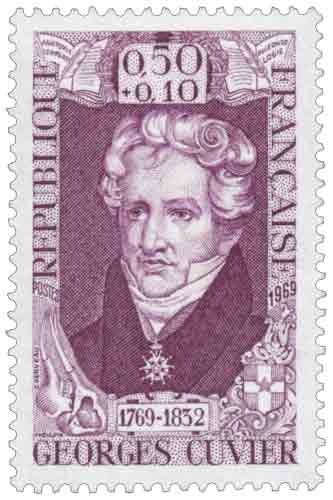 | Commentaire | Le timbre français émis en mai 1969 à l’effigie de Georges Cuvier s’inscrit dans la série des Célébrités du XVIIIᵉ au XXᵉ siècle et commémore le bicentenaire de la naissance d’un savant majeur dont l’œuvre a profondément structuré les sciences naturelles au tournant des XVIIIᵉ et XIXᵉ siècles ; en mettant à l’honneur un naturaliste né à Montbéliard et devenu l’une des figures centrales du Muséum national d’Histoire naturelle et de l’Institut, cette émission rappelle le rôle décisif joué par Cuvier dans l’élaboration de la classification animale et dans la fondation de l’anatomie comparée, ainsi que dans l’émergence de la paléontologie par l’étude systématique des fossiles et des corrélations entre formes et fonctions, témoignant de la manière dont la France de la fin des années 1960 valorise, par le timbre-poste, les grandes figures scientifiques ayant contribué durablement au progrès des connaissances ; assorti d’une surtaxe au profit de la Croix-Rouge française, le timbre associe commémoration savante et finalité caritative, tandis que la vente anticipée organisée à Montbéliard souligne l’ancrage territorial du personnage honoré. Article rédigé pour WikiTimbres |