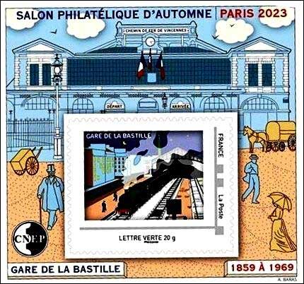 | Commentaire | La CNEP regroupe les négociants en philatélie et histoire postale, français et étrangers, les experts reconnus, les fabricants et détaillants de matériel, les éditeurs de documents philatéliques et de catalogues. Le Salon Philatélique d’Automne est l'un des plus importants salons de professionnels en Europe. Les philatélistes confirmés comme les collectionneurs en herbe peuvent acheter et découvrir des milliers de timbres et documents postaux. Philaposte proposera sur les trois jours des émissions culturelles, historiques, aériennes et d'histoire postale, avec des timbres, des blocs, des carnets et d'autres produits. Visuel : la façade de la gare de la Bastille Visuel du timbre : les voies ouvertes de la gare, une locomotive à vapeur Mikado série 141 (v.1960). |