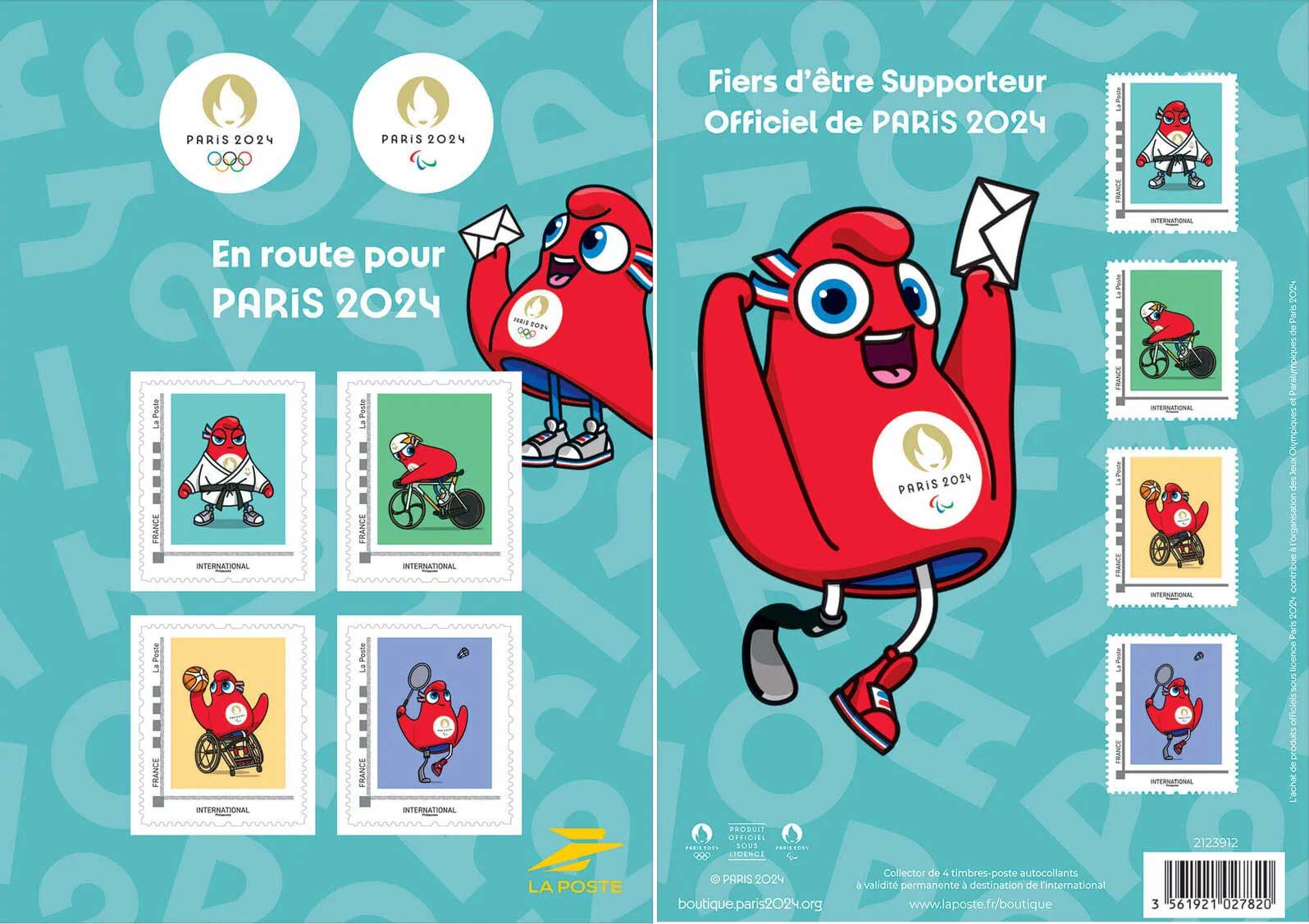 | Commentaire | Visuel : les mascotttes Olympiques et Paralympiques dans différentes activités sportives des J.O. de Paris 2024. Mention "Paris 2024" en braille sous la semelle. Origine : Les Phryges sont issues d’un vêtement qui est un symbole de liberté, présent dans notre Histoire depuis des siècles, et qui est apparu dès l’Antiquité. Présent sur des drapeaux d’Amérique latine avant d’être popularisé par les révolutionnaires français, le bonnet phrygien est aujourd’hui bien connu de l’imaginaire populaire français. Symbole révolutionnaire, de la République et de liberté, le bonnet phrygien coiffe Marianne dans nos mairies, ou sur les timbres. Les Phryges sont les héritières d’une longue tradition : on les retrouve aux côtés des Français lors des grands rendez-vous de l’Histoire. Les Archives Nationales révèlent des traces de Phryges bâtisseuses dès 1163 sur le chantier de la cathédrale Notre-Dame de Paris, leur présence en 1789, ainsi que lors de la construction de la Tour Eiffel, et pendant les Jeux de 1924. |