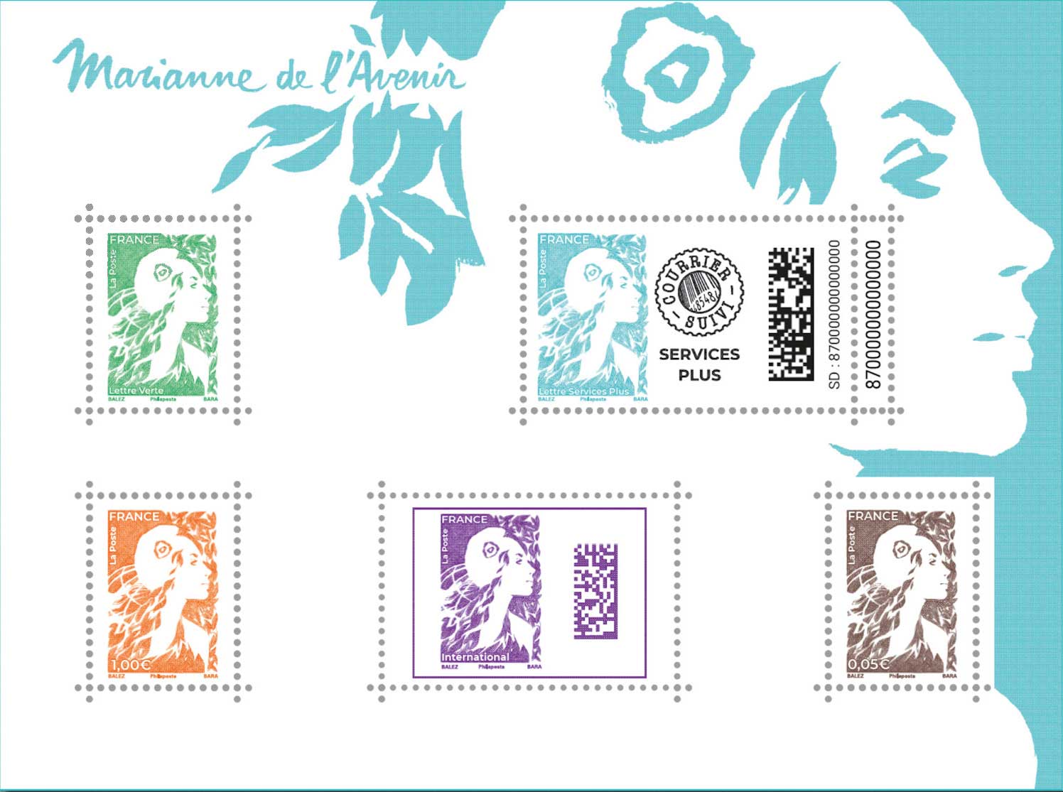 | Description | Bloc-feuillet de 5 timbres de la Marianne de l'Avenir |