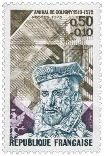 | Commentaire | Le timbre-poste français émis en 1973 en hommage à l’amiral de Coligny s’inscrit dans la tradition des émissions commémoratives consacrées aux grandes figures de l’histoire nationale, tout en répondant à un objectif philanthropique par l’adjonction d’une surtaxe au profit de la Croix-Rouge française. D’un format vertical et d’une valeur faciale de 0,50 franc assortie d’une surtaxe de 0,10 franc, il correspond au tarif d’affranchissement de la lettre simple jusqu’à 20 grammes en France métropolitaine, ce qui lui assure une large diffusion postale sur une courte période. Le portrait gravé par Jacques Gauthier, exécuté en taille-douce, technique privilégiée pour les timbres de personnages en raison de la précision et de la profondeur qu’elle confère aux traits, s’inspire des représentations connues de Gaspard de Coligny et restitue l’austérité et la gravité associées à cette figure majeure des guerres de Religion. L’émission intervient dans un contexte philatélique où La Poste française valorise à la fois la mémoire historique et l’usage civique du timbre, en associant commémoration et solidarité. Le choix de Coligny, amiral de France et chef du parti protestant, renvoie à une période charnière du XVIᵉ siècle marquée par les conflits confessionnels et les tentatives avortées de conciliation politique, culminant avec son assassinat lors de la Saint-Barthélemy en 1572. Sur le plan iconographique, le timbre privilégie une représentation sobre et frontale, sans décor narratif, laissant au visage et au regard la charge symbolique d’un homme d’État et de guerre, fidèle à sa foi et à sa conception de la grandeur du royaume. Une anecdote historiquement attestée souligne que Charles IX, impressionné par l’autorité morale de Coligny après son retour au Conseil royal, le surnommait « mon père », relation singulière qui contribua paradoxalement à précipiter sa chute. Par son tirage limité dans le temps et son retrait rapide de la vente, ce timbre de 1973 constitue un témoignage philatélique concentré de la manière dont la France a choisi de rappeler, par l’objet postal, la complexité et la tragédie de son histoire religieuse et politique. Article rédigé pour WikiTimbres |