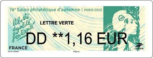 | Description | Vignette LISA du 76ème Salon Philatélique d'Automne - Paris 2023. |