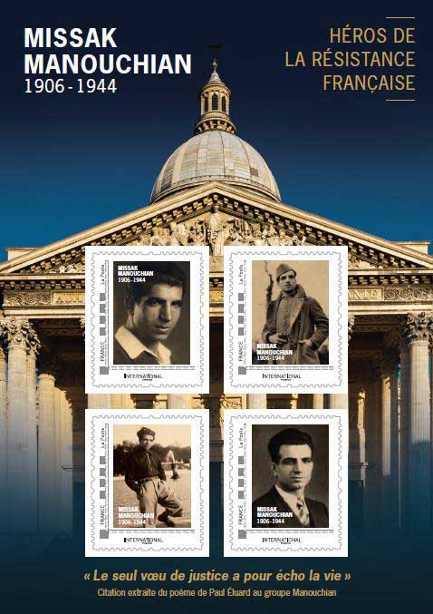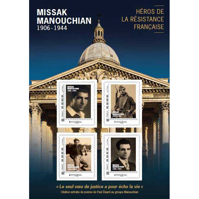 | Description | Émission d'un collector de 4 timbres à l’effigie de Missak MANOUCHIAN, héros de la résistance française, à l’occasion de son entrée au Panthéon. |