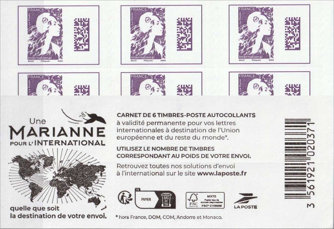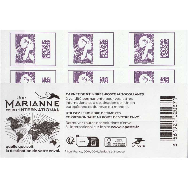 | Description | Carnet 6 timbres Marianne de l'avenir - Lettre internationale |