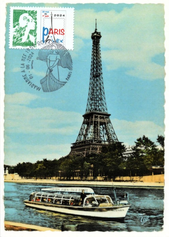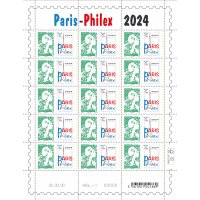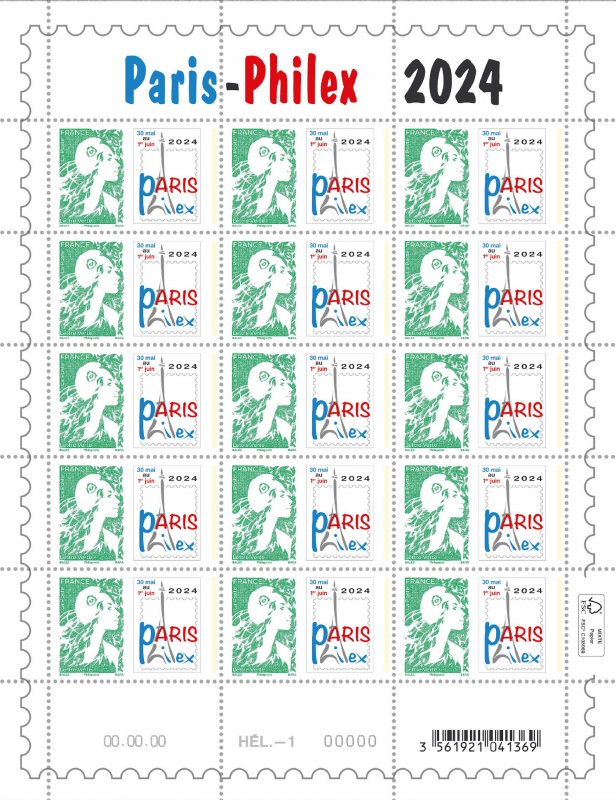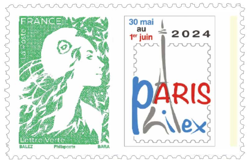 | Commentaire | Visuel : pour annoncer l'exposition philatélique organisée à Paris fin mai 2024, le TVP de la série courante "Marianne de l'Avenir" est associé au logo de Paris-Philex, création spéciale Philaposte. Depuis le premier salon philatélique Paris-Philex en 2016, la tour Eiffel, le monument le plus emblématique de Paris, est stylisée sur le logo de Paris Philex. |