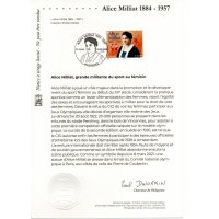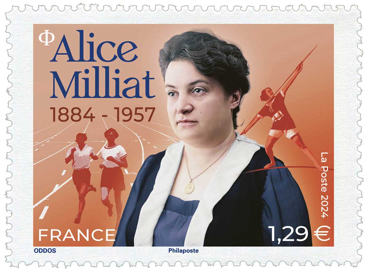| Description | Émission d'un timbre à l’effigie d’Alice MILLIAT sportive accomplie, féministe engagée qui a organisé en 1922 les premiers Jeux féminins. |