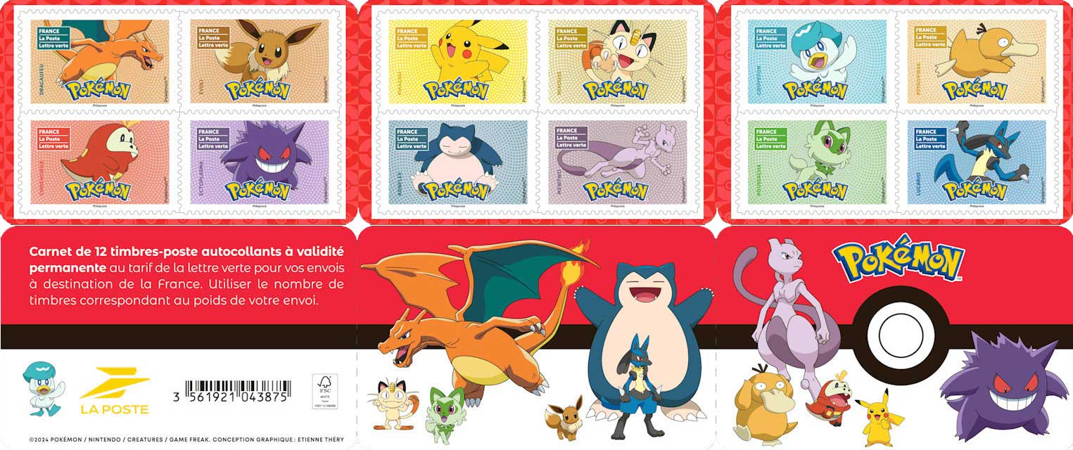 | Description | Émission d'un carnet de douze timbres-poste autour de certains Pokémon iconiques. |