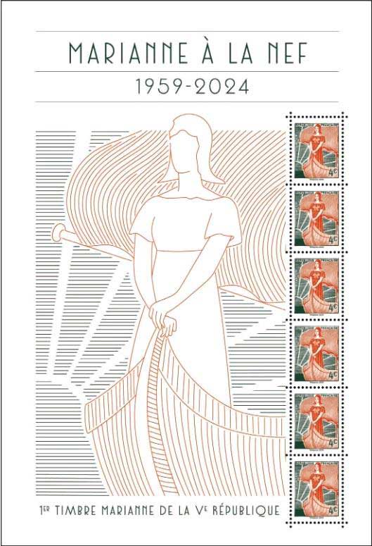 | Description | Bloc spécial PARIS-PHILEX 2024 - Marianne à la Nef 1959-2024 |