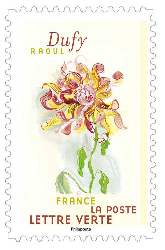 | Description | Provenant du carnet de douze timbres-poste qui met en lumière des aquarelles de fleurs créées par Raoul DUFY. Elles ont illustré l’ouvrage de Colette, Pour un herbier. |