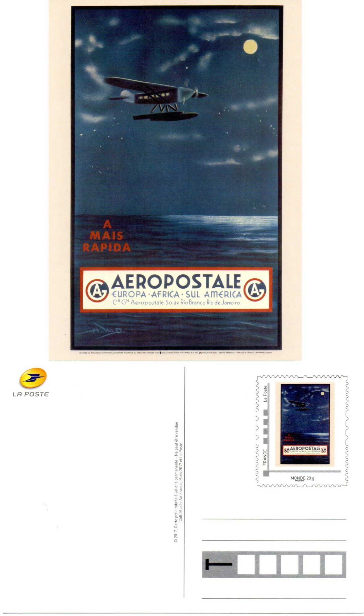 | Description | Carte pré-timbrée - série de 4 cartes "Aéropostale" |